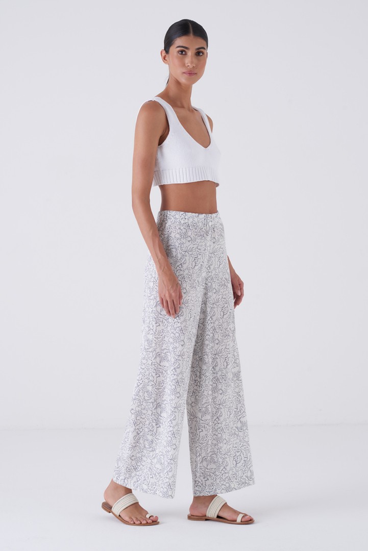 PANTALONE LUNGO CON ELASTICO IN VITA IN RASO STRETCH CON STAMPA SERIGRAFIA
